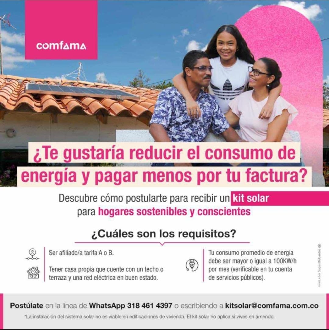 - Los kit solares son solamente para las personas afiliadas a la caja de compensación las cuales para poder adquirirlo deben cumplir con ciertos requisitos.